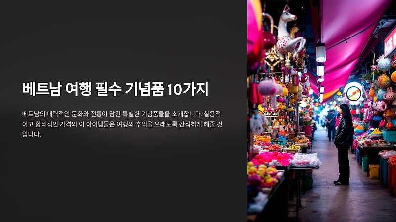 베트남은 다채로운 문화와 독특한 전통이 깃든 매력적인 나라로, 이곳을 방문하면 많은 관광객들이 현지의 특별한 기념품을 구입하곤 합니다. 베트남의 기념품들은 지역의 특색을 살린 디자인과 실용성, 그리고 합리적인 가격이 특징입니다.