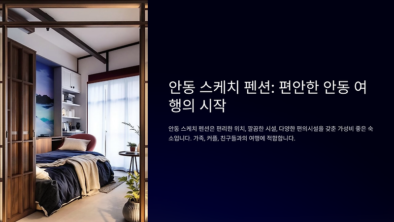 안동 스케치 펜션은 편리한 위치, 깔끔한 시설, 다양한 편의시설을 갖춘 가성비 좋은 숙소입니다.