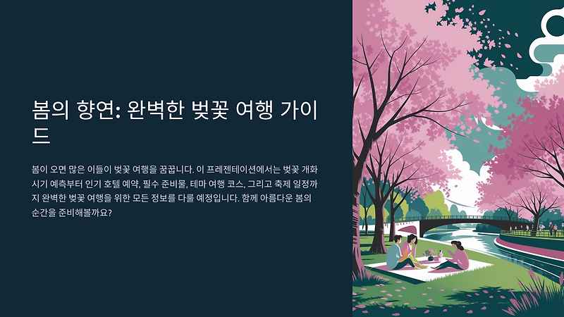 이 글을 정독하시고 미리미리 계획을 세우시면, 아름다운 벚꽃 풍경과 함께 잊지 못할 추억을 만드시리라 믿습니다. 이제부터 벚꽃 시즌을 알차게 즐기는 방법을 시작해볼까요?