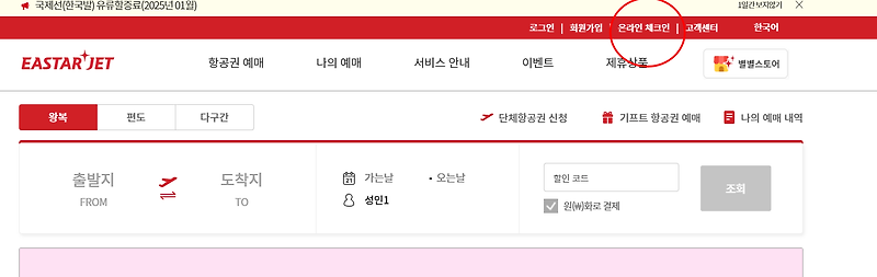 이스타항공 온라인 체크인 절차